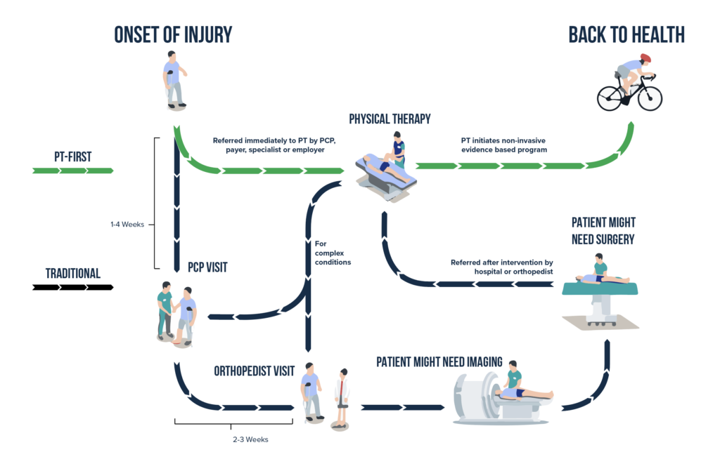 We envision an alternative approach where physical therapy and chiropractic care are the first stop on a patient’s care journey, not the last. This “physical therapy first” approach introduces conservative, evidence-based treatments early on which helps avoid unnecessary and complex treatments and diagnostics.